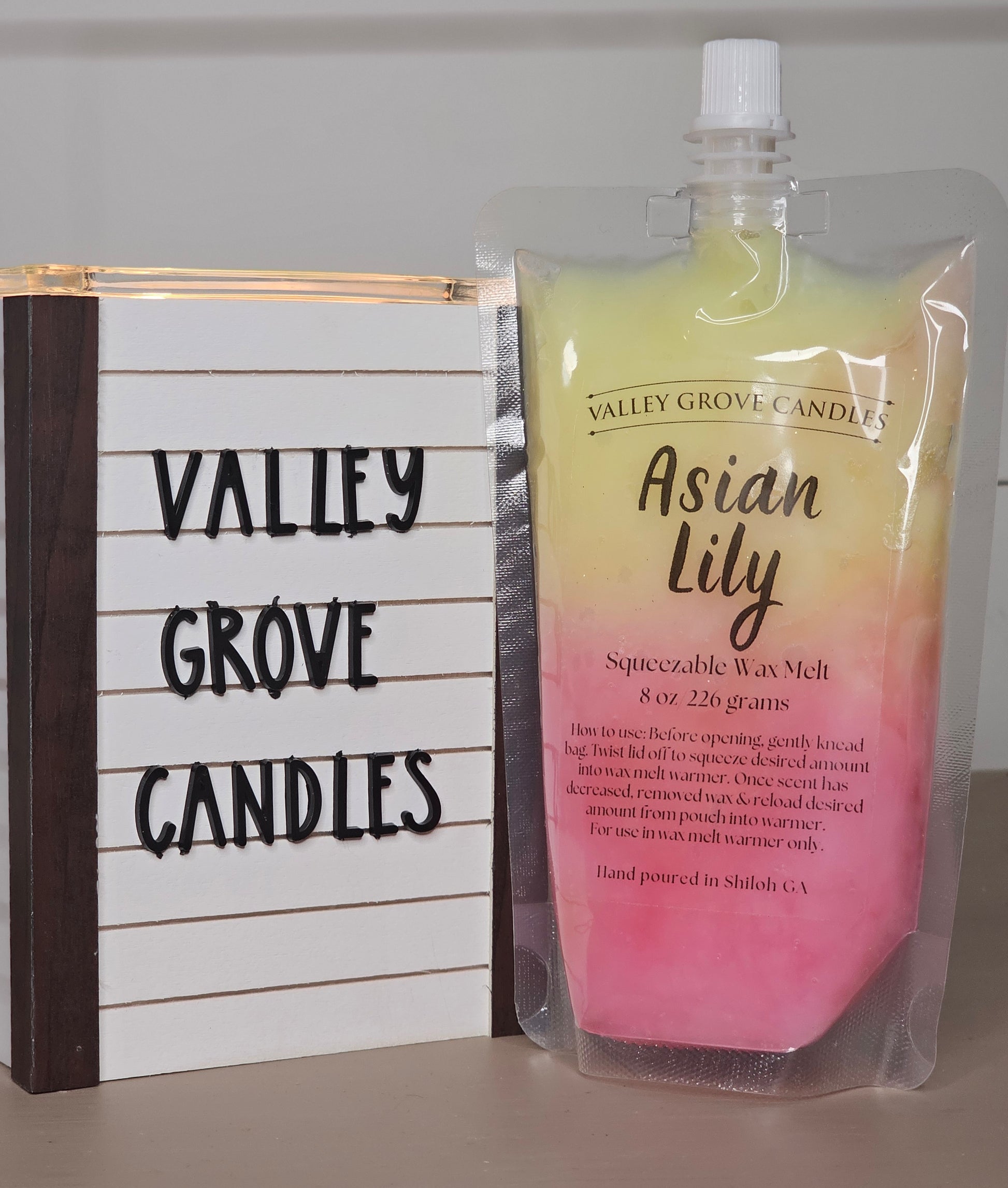 Asian Lily is a squeezable wax melt that captures the essence of a romantic morning in a lush garden. It opens with refreshing top notes of marine dawn, misted rain accord, water lily, raspberry, and lily of the valley, evoking the serenity of a dewy stroll. The heart notes of sun-drenched rose, wild jasmine, sea lotus, and linden blossom bring to life the vibrant beauty of blooming flowers. Finally, earthy bamboo wood and clean musk create a luxurious, tranquil finish. With Asian Lily, escape to a peaceful oasis where nature’s elegance unfolds.