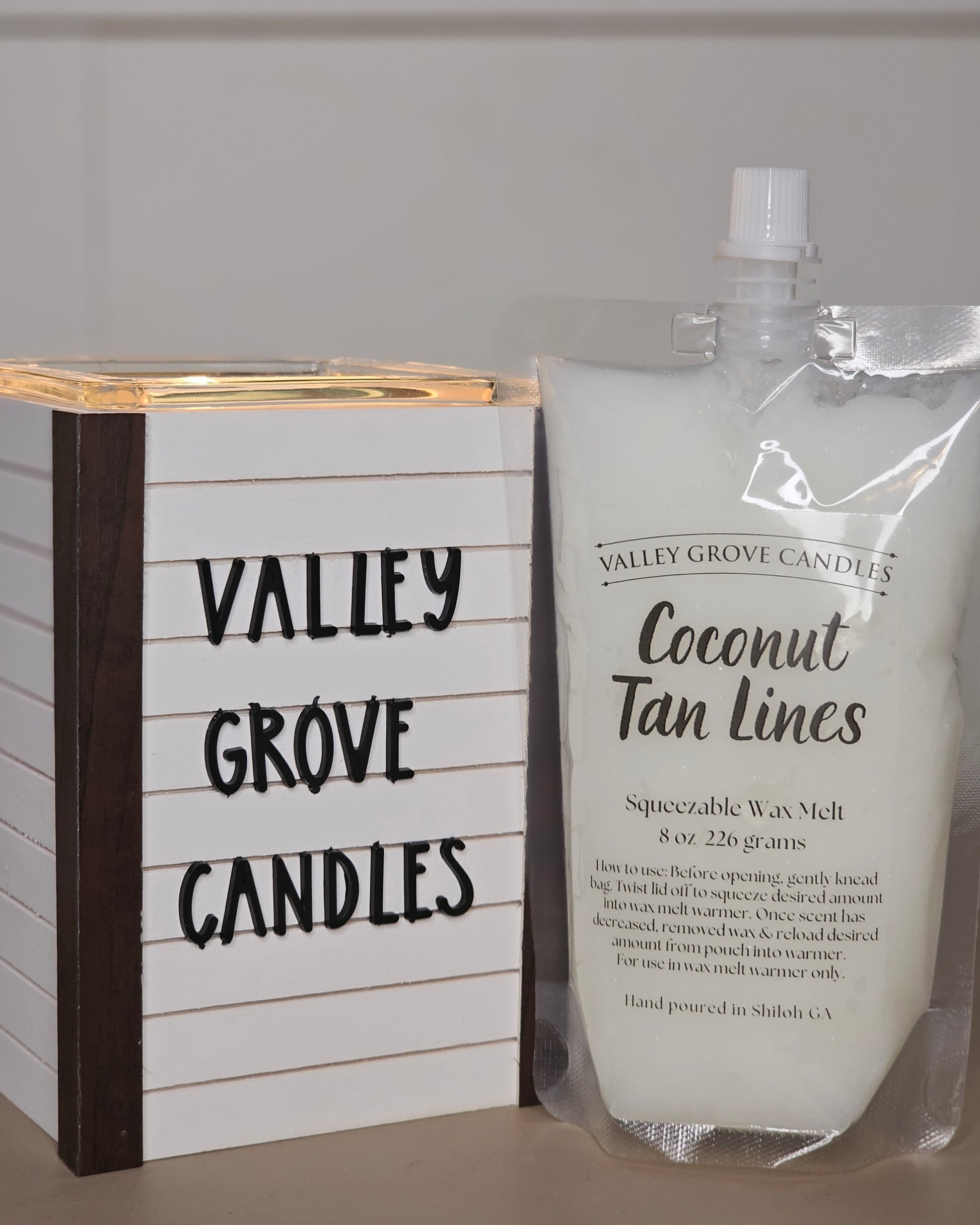 Coconut Tan Lines is a squeezable wax melt that captures the essence of a sun-soaked day at the beach. Indulge in the sweet, creamy scent of fresh coconut, perfectly blended with hints of warm vanilla and exotic musk. This irresistible fragrance transports you to a tropical paradise, evoking the feeling of soft sand beneath your feet and the sun kissing your skin. Bring the carefree vibe of a beach getaway into your home with every squeeze.