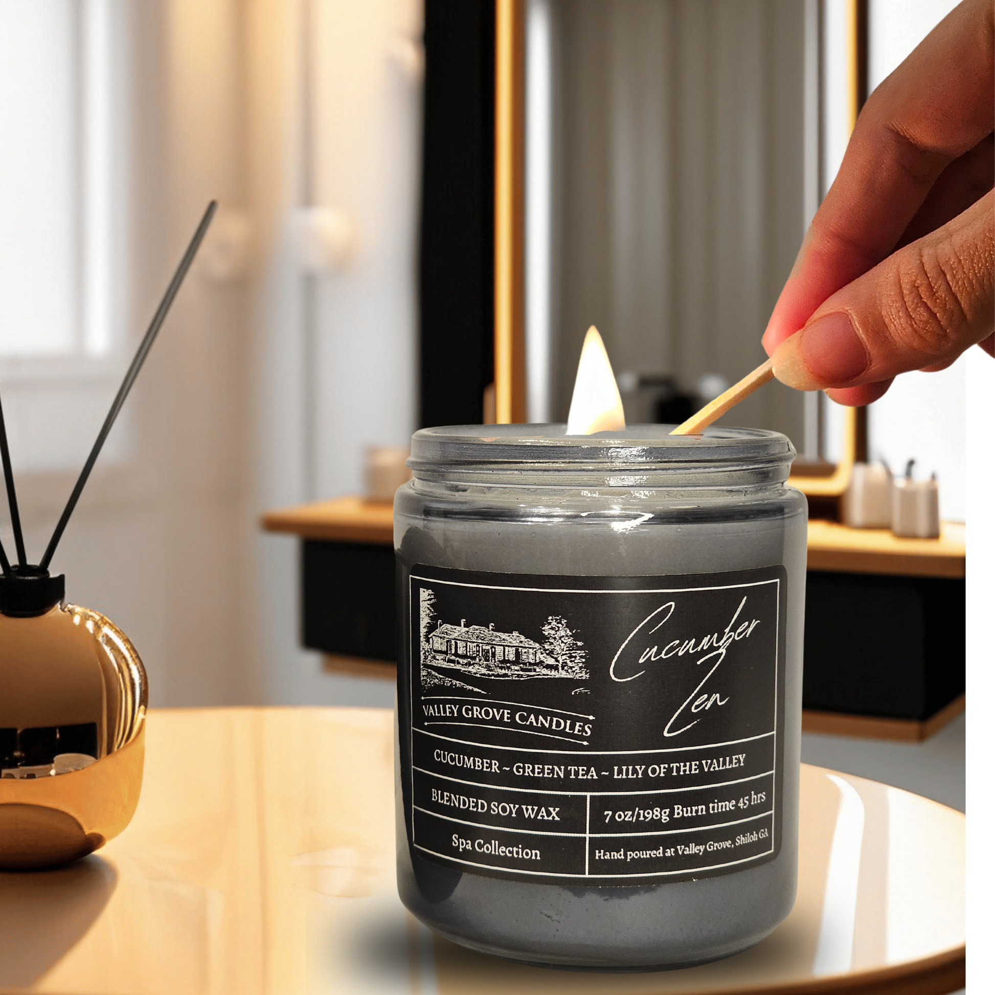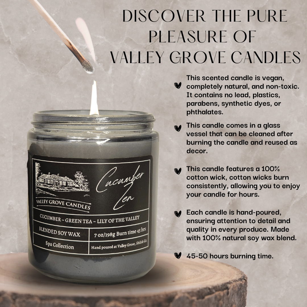 Cucumber Zen is a refreshing and calming candle that combines the crispness of cucumber, the soothing essence of green tea, and the delicate floral aroma of lily of the valley. This blend creates a serene and tranquil atmosphere, perfect for moments of relaxation and mindfulness. Light up this candle to transform your space into a peaceful oasis, where the stresses of the day melt away, leaving you refreshed and rejuvenated.