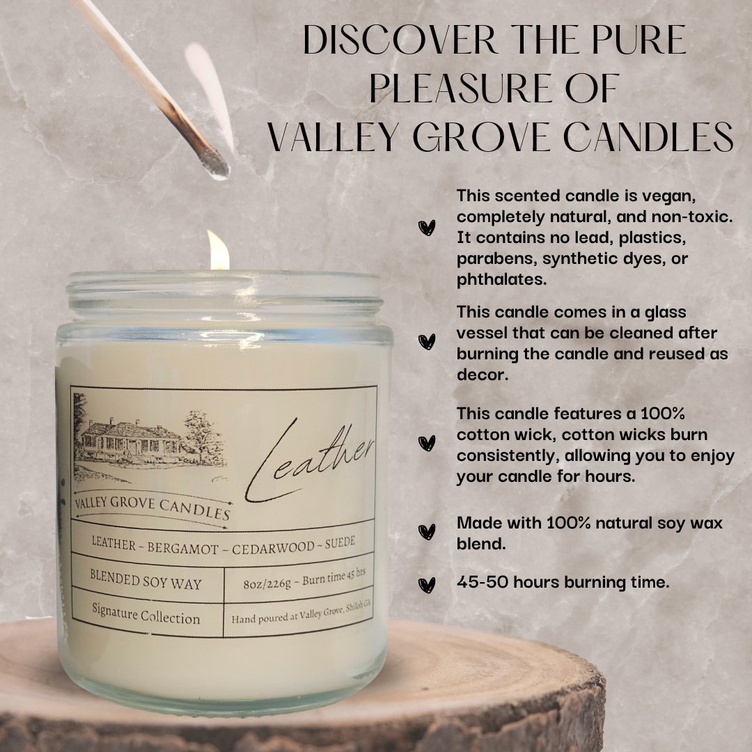 Indulge in the nostalgic scent of our Leather candle, reminiscent of a traditional saddle shop. This blend of leathery notes captures the authentic aroma of finely crafted leather, adding a rugged yet sophisticated essence to your surroundings.