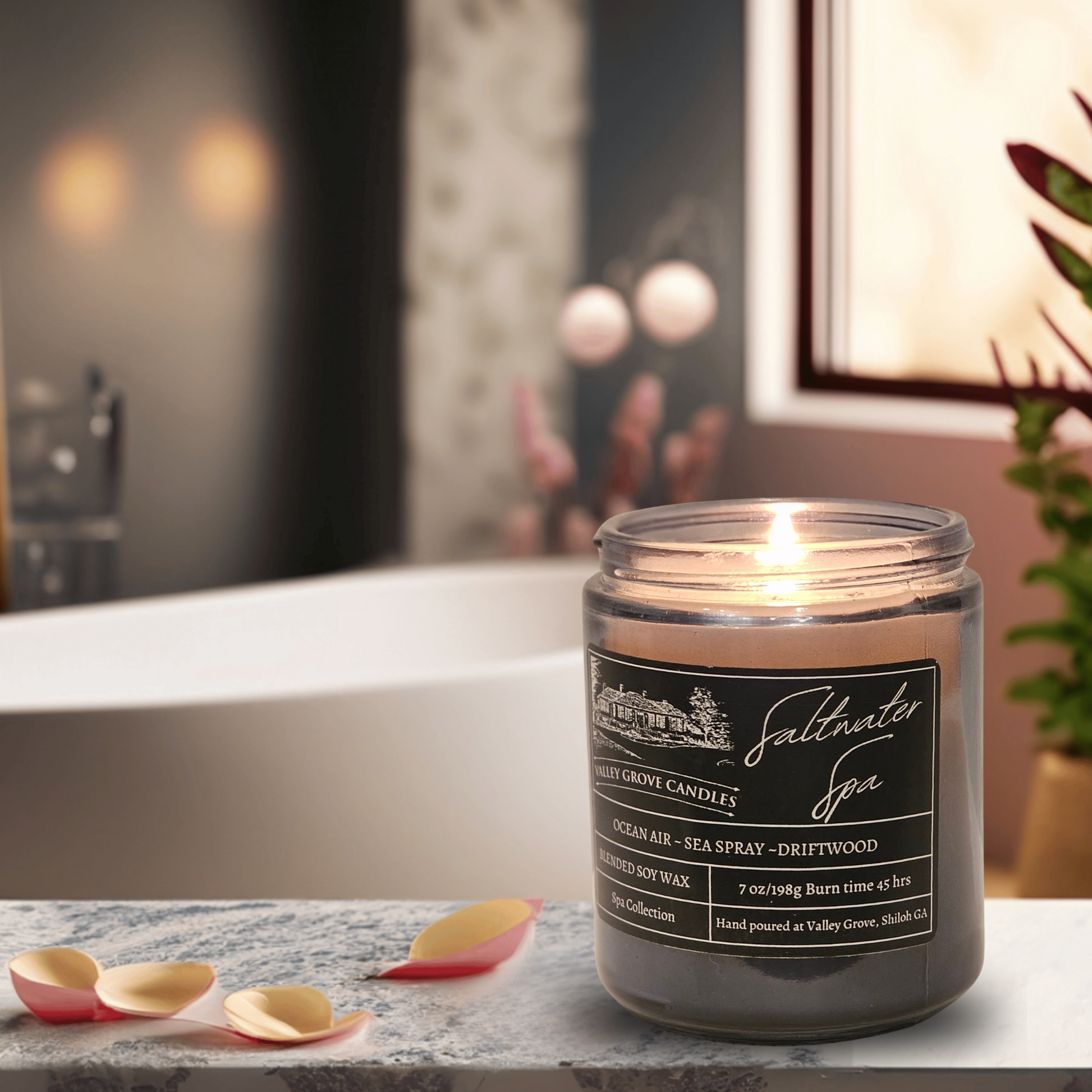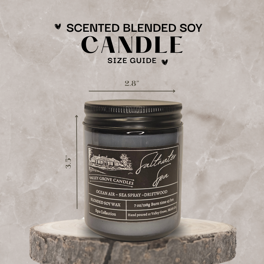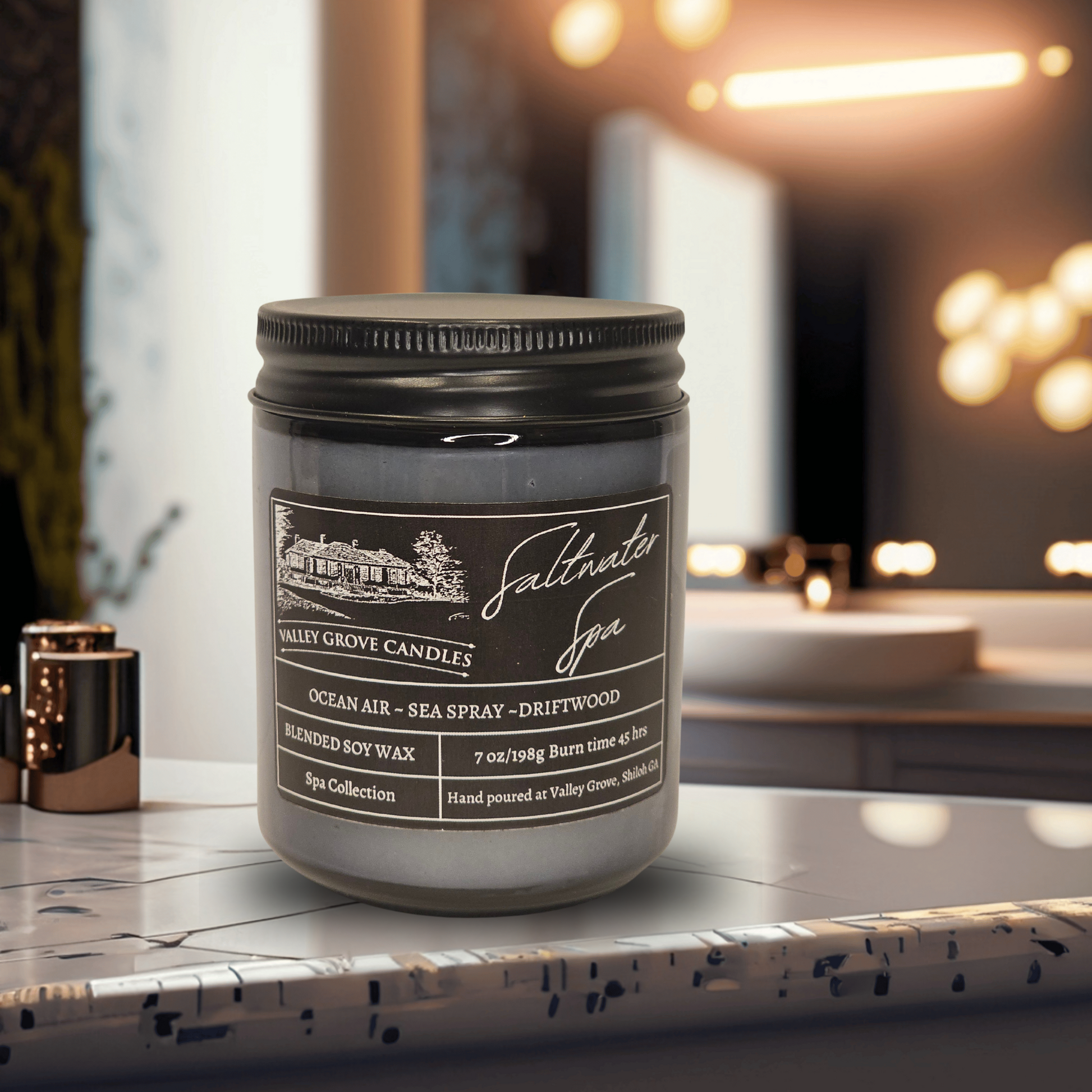 Indulge in the coastal tranquility of our Saltwater Spa candle. Infused with notes of ocean air, sea spray, and driftwood, this candle captures the essence of a serene seaside escape. The refreshing aroma of ocean air and sea spray brings a crisp, invigorating feel, while the earthy scent of driftwood grounds the experience, evoking the peacefulness of the shore. Let the stress melt away and revitalize your mind and body. Escape to the ocean without leaving your home.