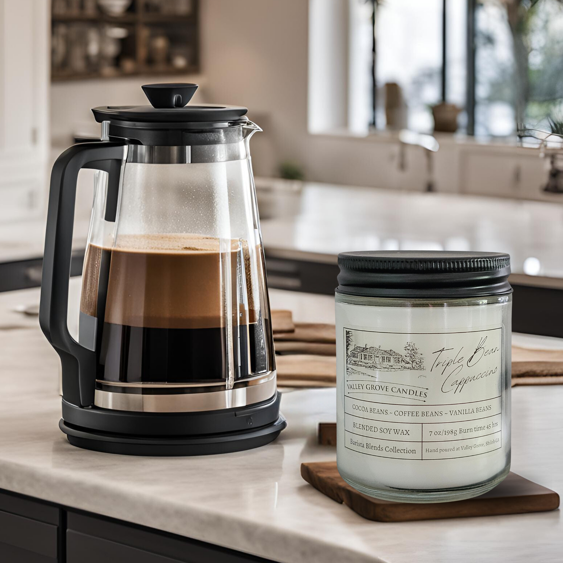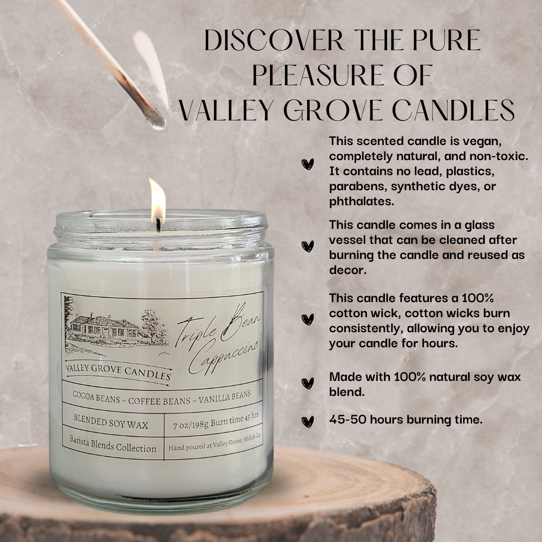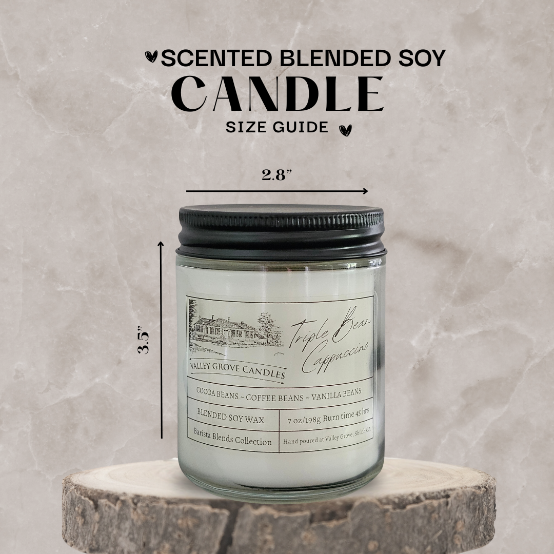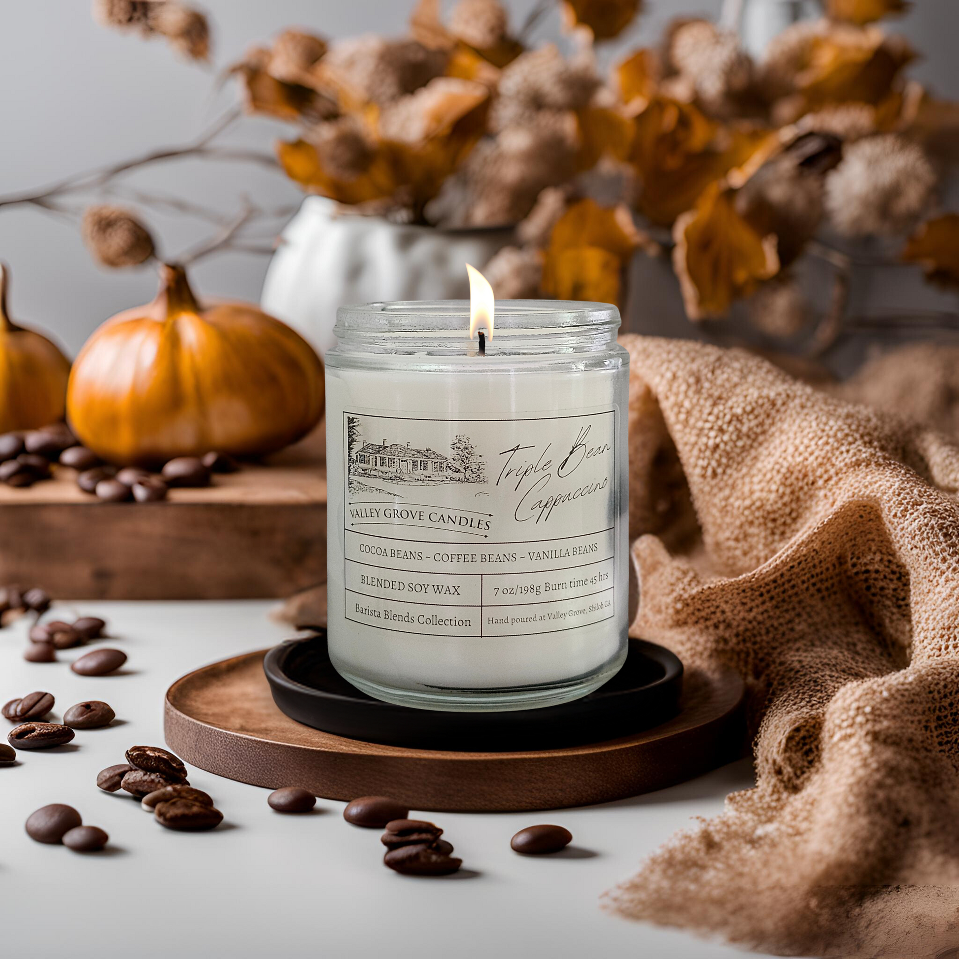 Indulge in the rich, aromatic blend of our Triple Bean Cappuccino candle. Infused with the comforting essence of vanilla beans, the robust aroma of freshly ground coffee beans, and the decadent touch of cocoa beans, this candle brings the warmth and coziness of your favorite cafe’ right into your home. Perfect for any coffee lover, this scent captures the essence of a freshly brewed cappuccino, creating an inviting and soothing atmosphere.