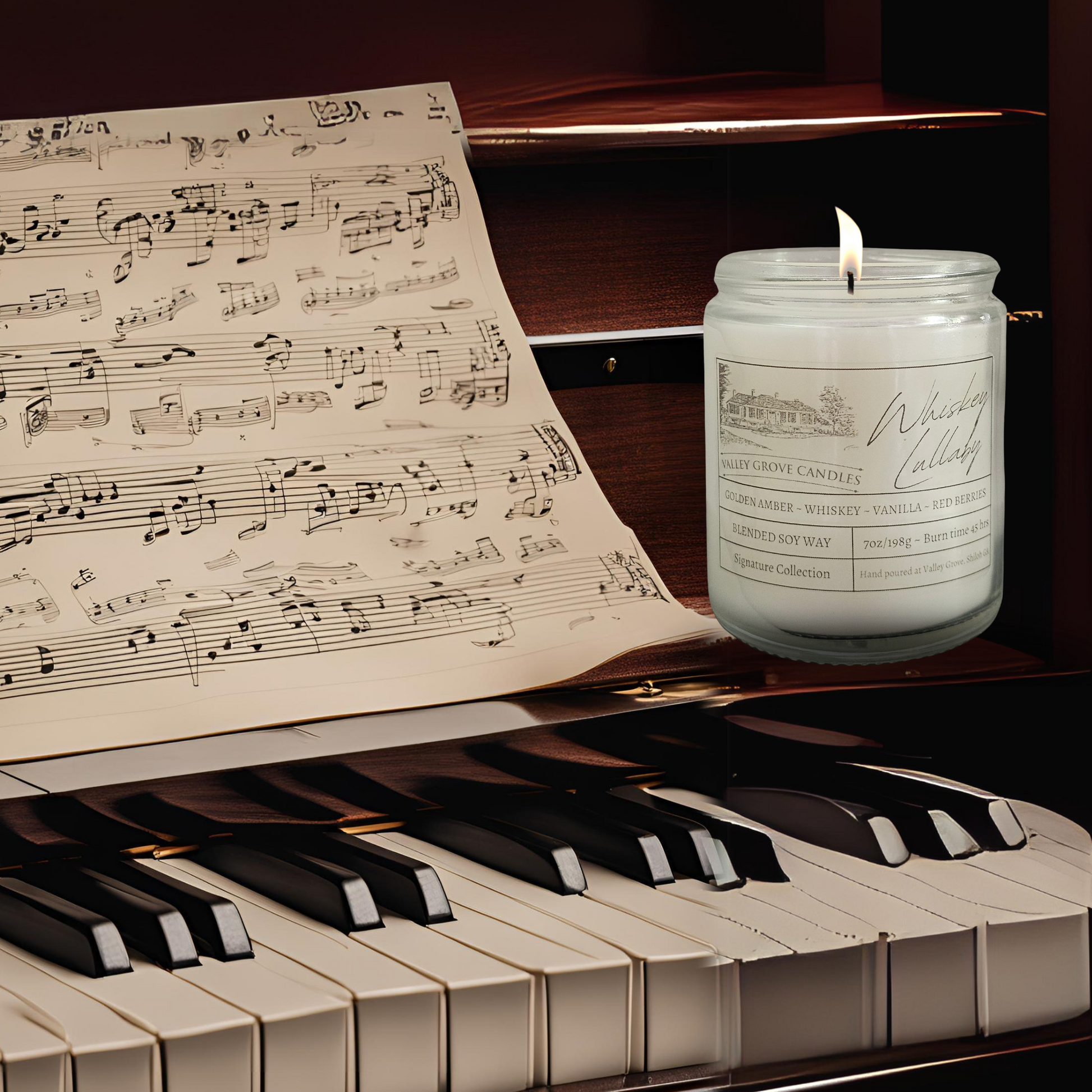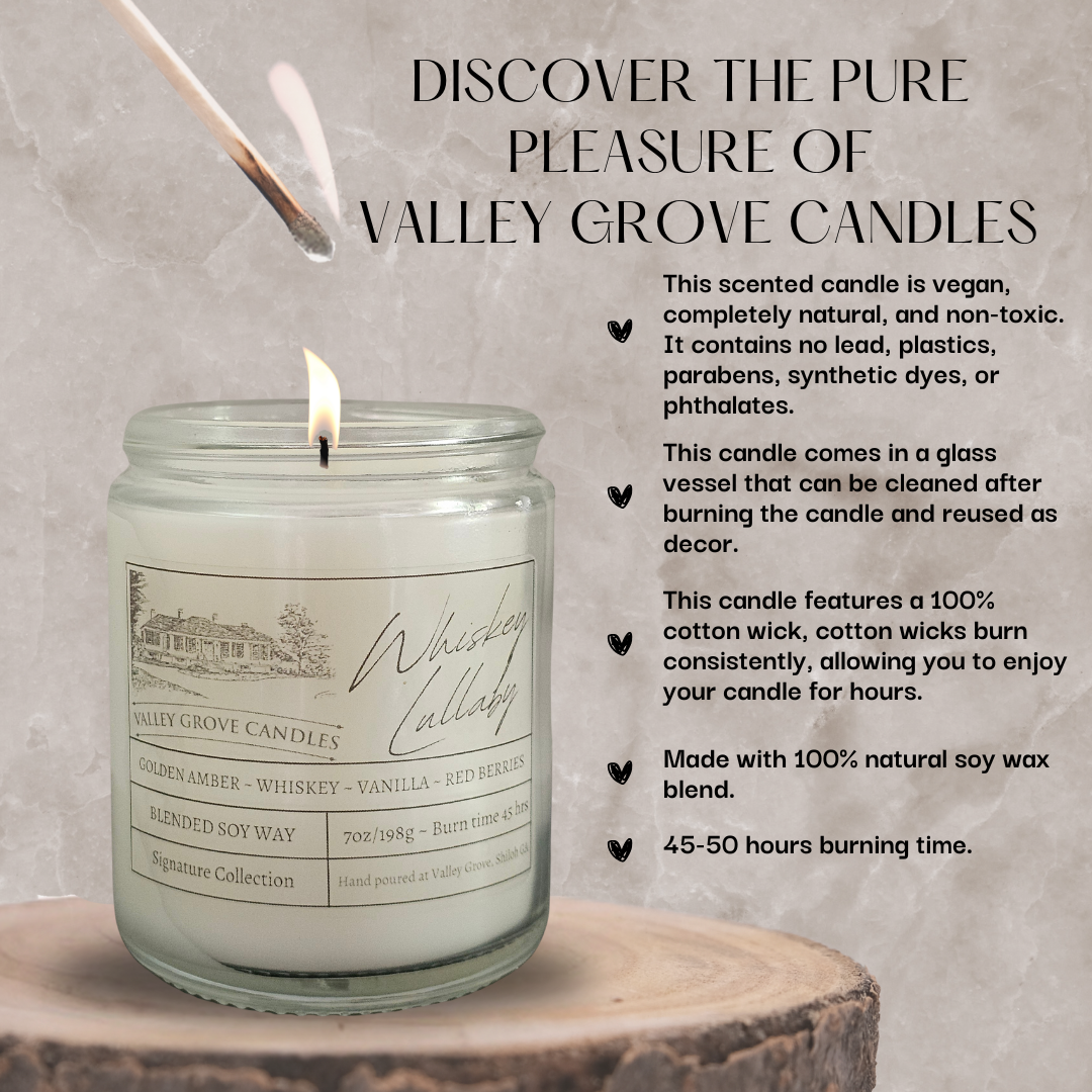Immerse yourself in the soothing embrace of our Whiskey Lullaby candle. The intoxicating aroma begins with the bold, warm scent of whiskey, perfectly balanced by the sweet and tangy notes of ripe blackberries and tart cranberries. As the candle burns, the rich whiskey heart note deepens, adding a layer of complexity and warmth. Finally, the scent settles into a comforting base of golden amber, creating a harmonious blend that lingers long after the flame is extinguished. Whiskey Lullaby is the perfect companion for a relaxing evening, enveloping you in a cozy, nostalgic ambiance.
